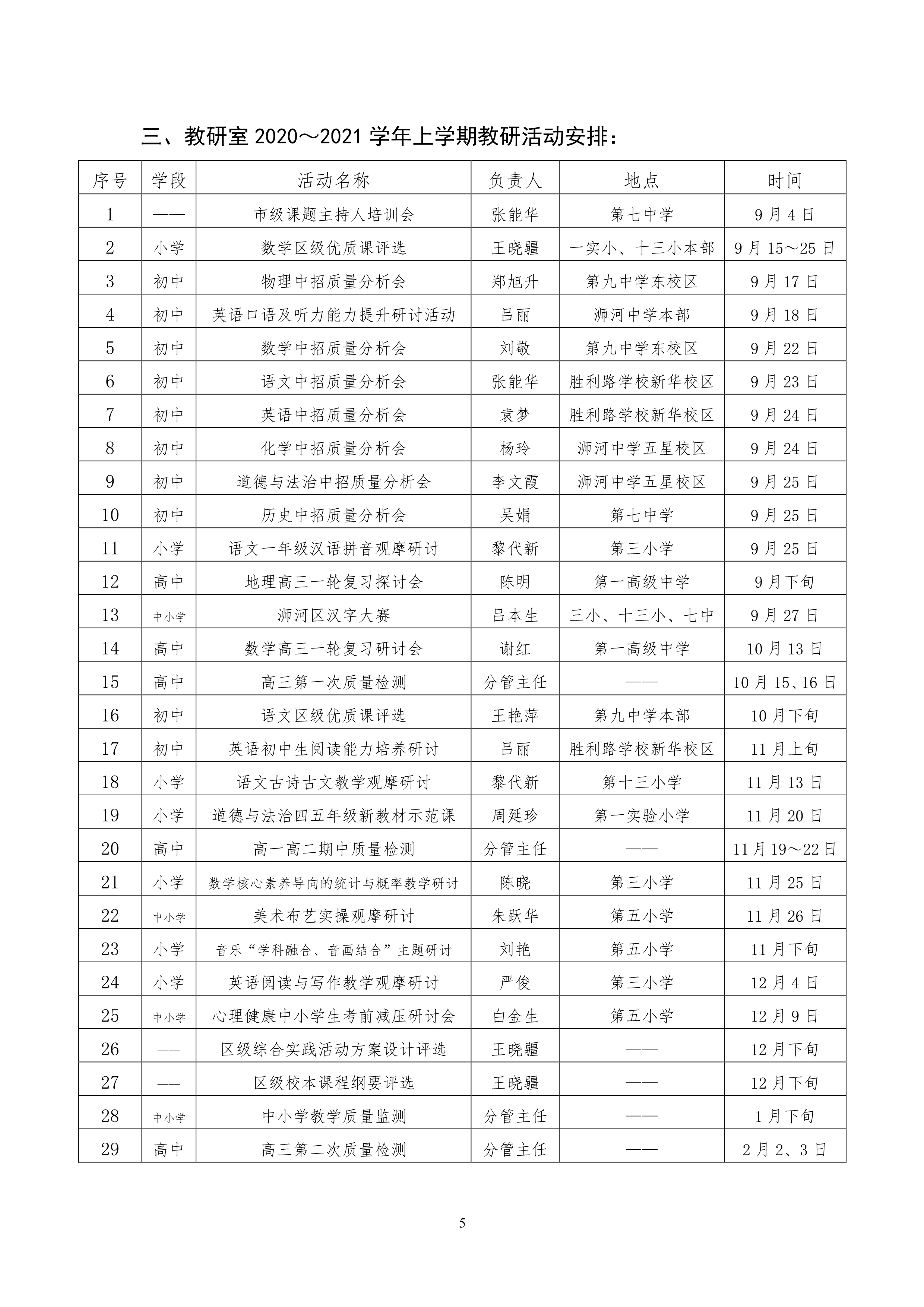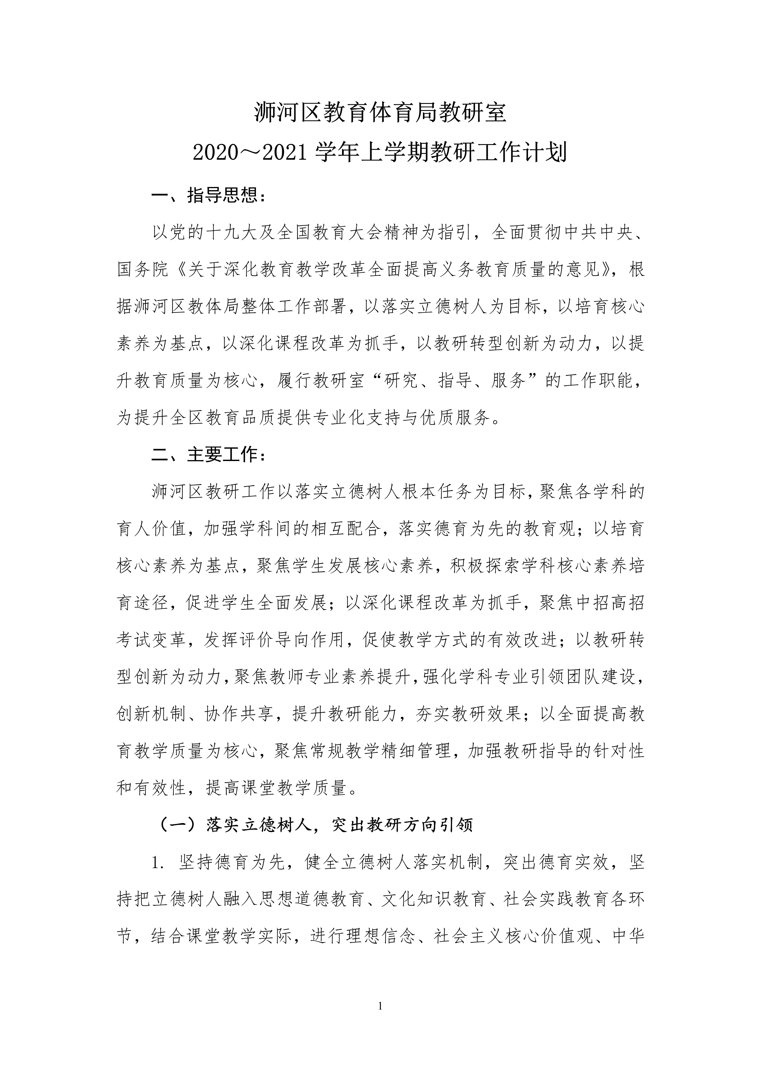 2020~2021学年上学期教研工作计划