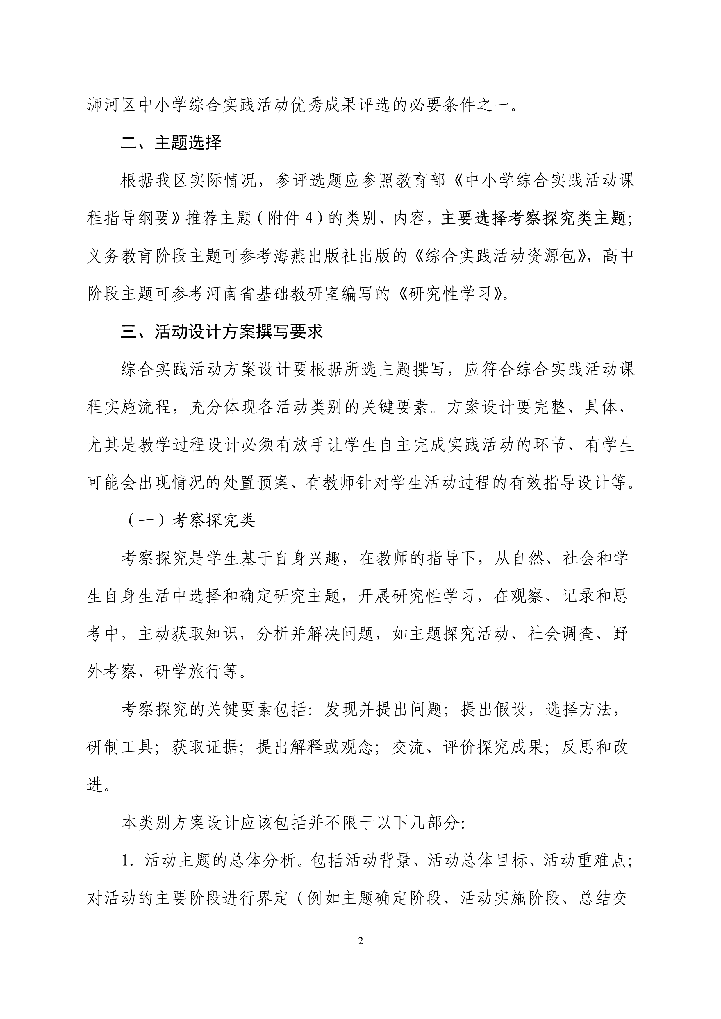 2021浉河区综合实践活动优秀方案设计评选通知.doc