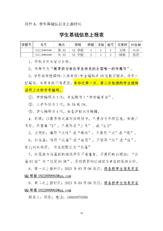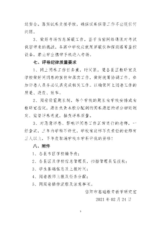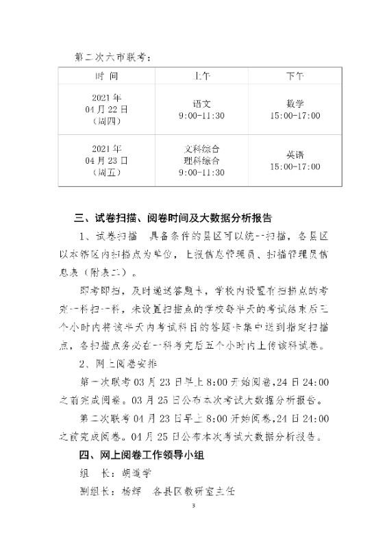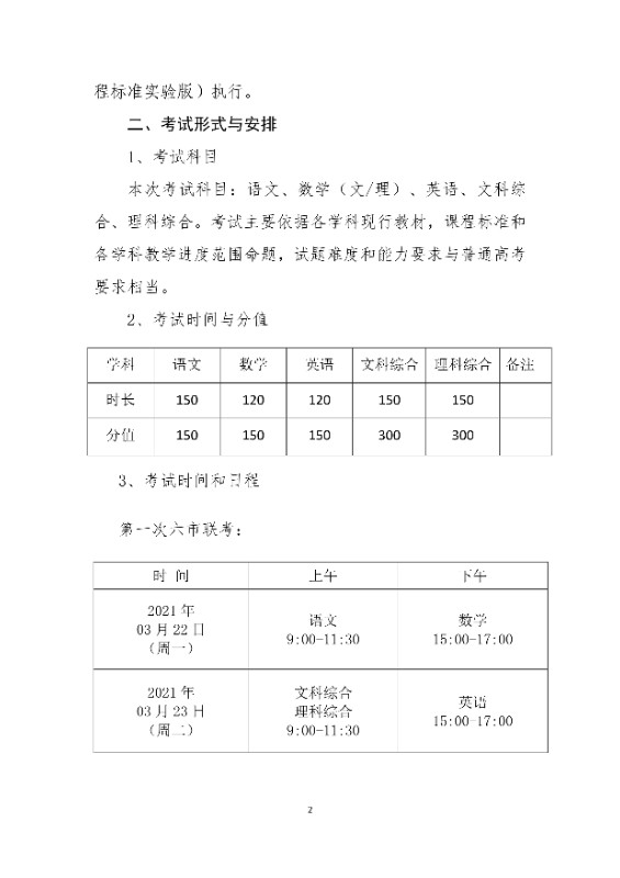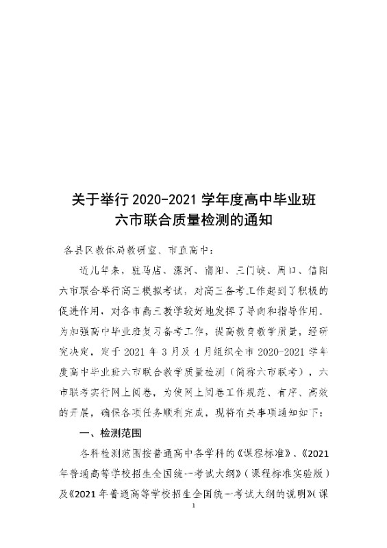 关于举行2020-2021学年度高中毕业班 六市联合质量检测的通知