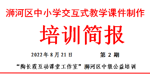 2022年8月10日—8月20日,由浉河区教育体育局主办,陶长霞互动课堂工作室承办的信阳市浉河区中小学交互式教学课件制作中级班(第2期)线上公益培训,如期举行并圆满落下帷幕。